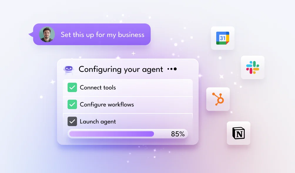 We build it for you in advance so you can start chatting with it in seconds. You can also get on a call with us, and we’ll set up custom agents for your business.