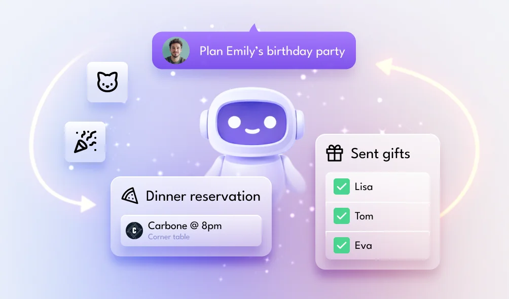 Books reservations, sends gifts, plans events, and delegates anything that needs a human touch to a human assistant.