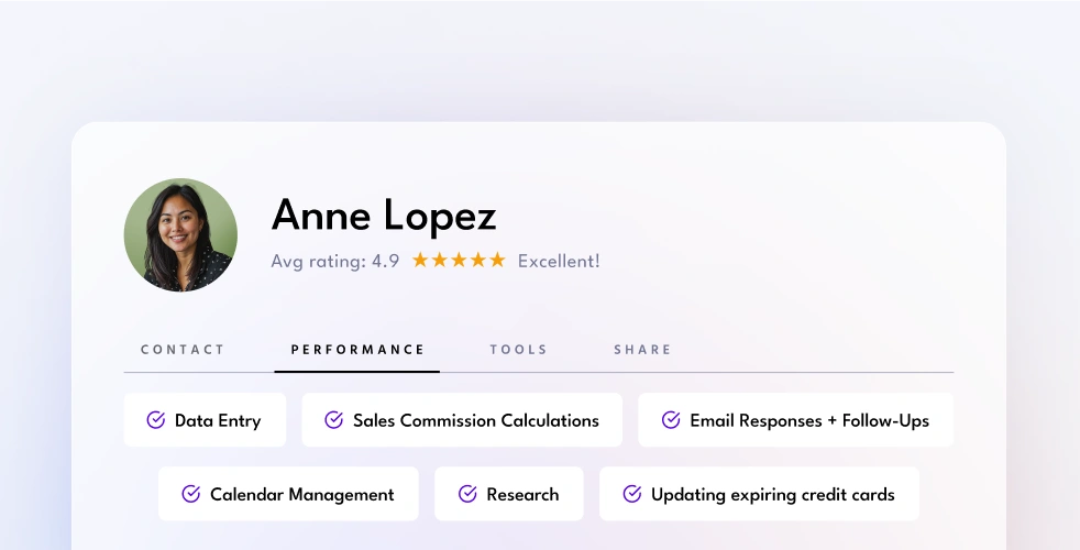 Adjust as demands shift – bring on more help, change assistants, or cut back anytime without a hassle.