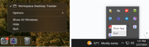- On Windows, right-click the Workspace Desktop Tracker icon in the System Tray Menu and choose “Quit.” This will fully close the application.